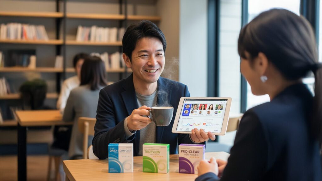遠近両用コンタクトレンズは国内外の主要メーカーから多種多様な製品が販売されており、それぞれが独自の技術と特徴を競っています。ここでは特に市場での人気が高く、実際の利用者からの評判も良好とされる代表的な製品を、その技術的背景と共にいくつか紹介します。